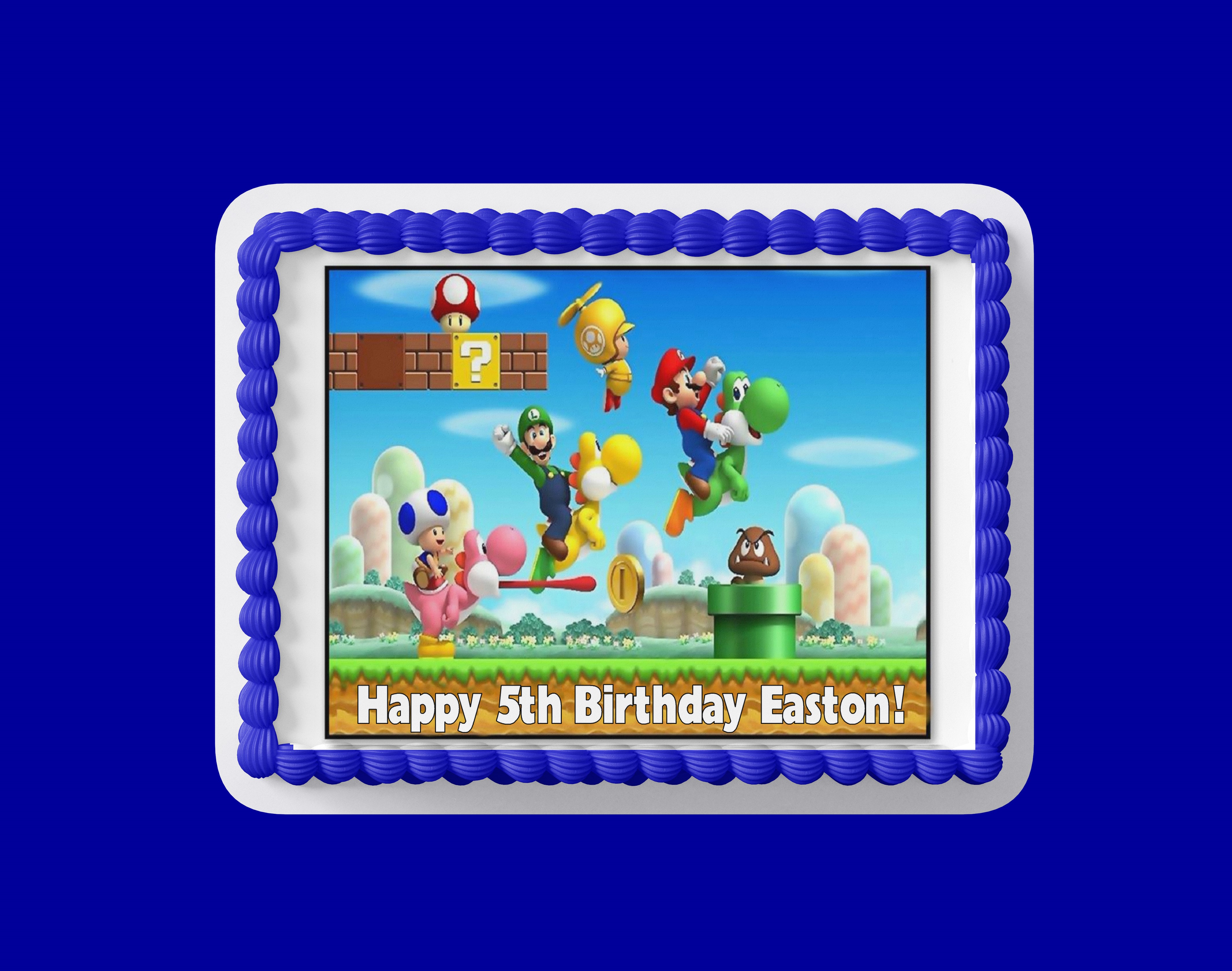 This is a custom edible image cake topper which is a thin frosting sheet that will fit a quarter sheet cake. (print area 7.5" x 10.5") Apply directly to the buttercream iced cake. Allow an hour to melt into the buttercream (May have to dab the buttercream to moisten/freshen before applying the topper)
