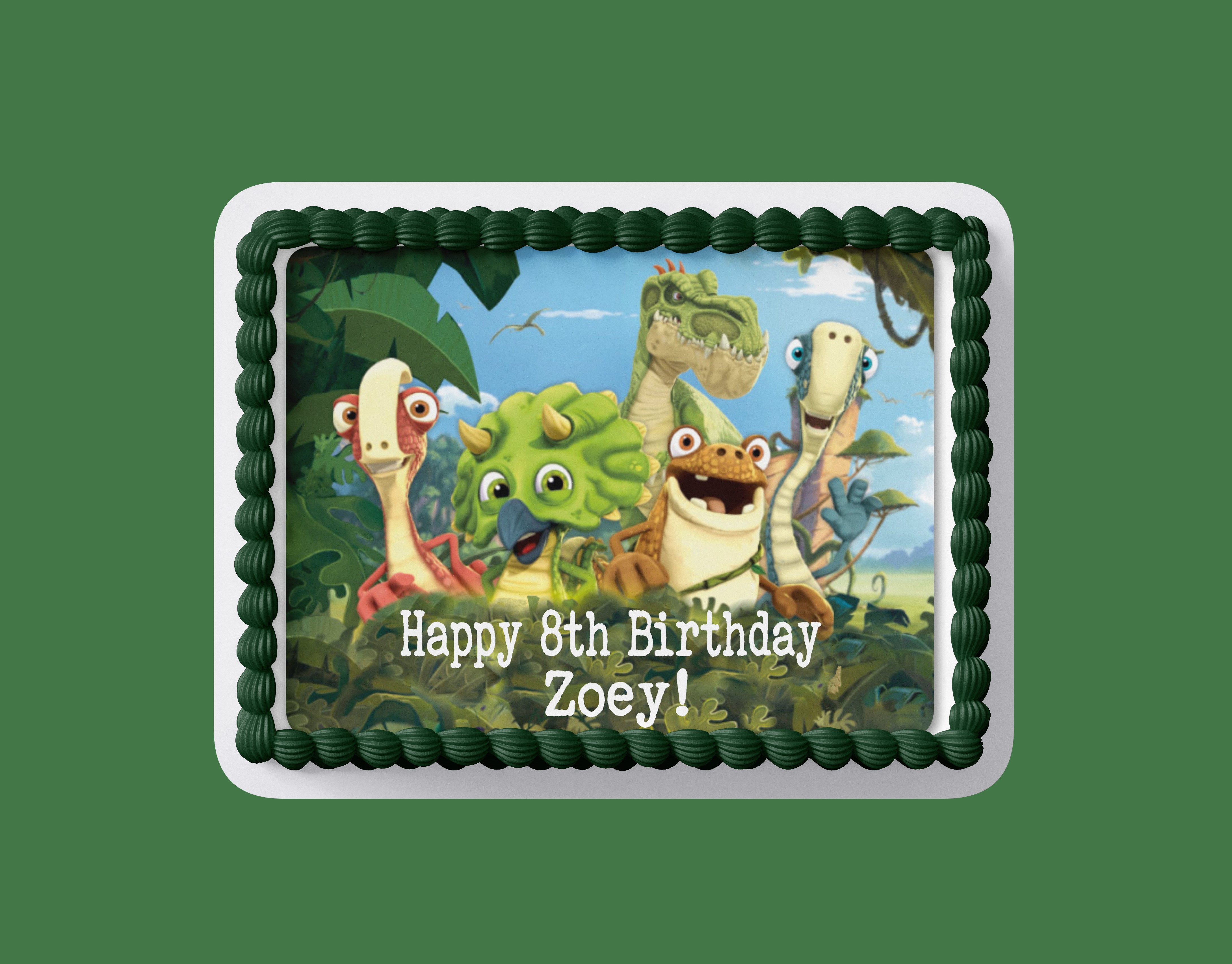 This is a custom edible image cake topper which is a thin frosting sheet that will fit a quarter sheet cake. (print area 7.5" x 10.5") Apply directly to the buttercream iced cake. Allow an hour to melt into the buttercream (May have to dab the buttercream to moisten/freshen before applying the topper)