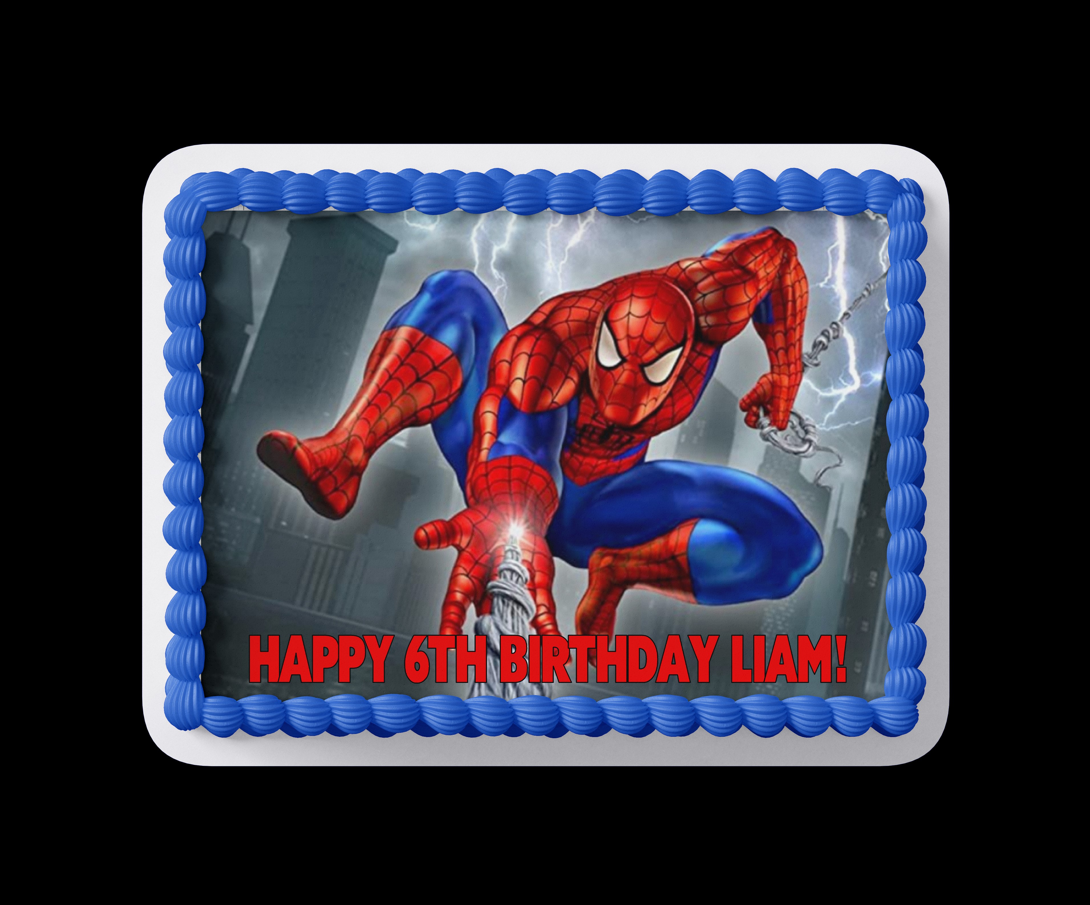 This is a custom edible image cake topper which is a thin frosting sheet that will fit a quarter sheet cake. (print area 7.5" x 10.5") Apply directly to the buttercream iced cake. Allow an hour to melt into the buttercream (May have to dab the buttercream to moisten/freshen before applying the topper)