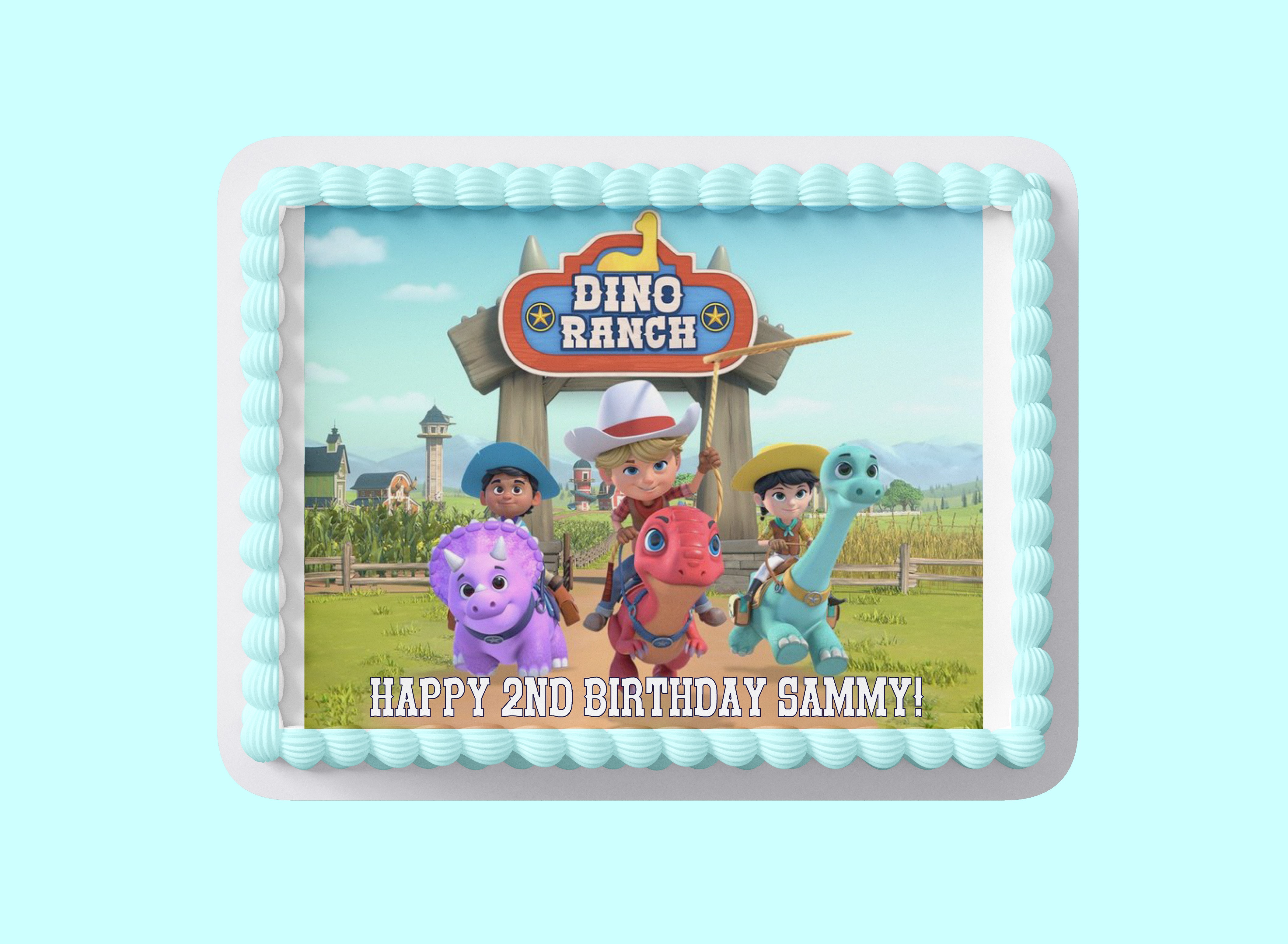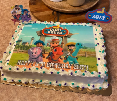 This is a custom edible image cake topper which is a thin frosting sheet that will fit a quarter sheet cake. (print area 7.5" x 10.5") Apply directly to the buttercream iced cake. Allow an hour to melt into the buttercream (May have to dab the buttercream to moisten/freshen before applying the topper)