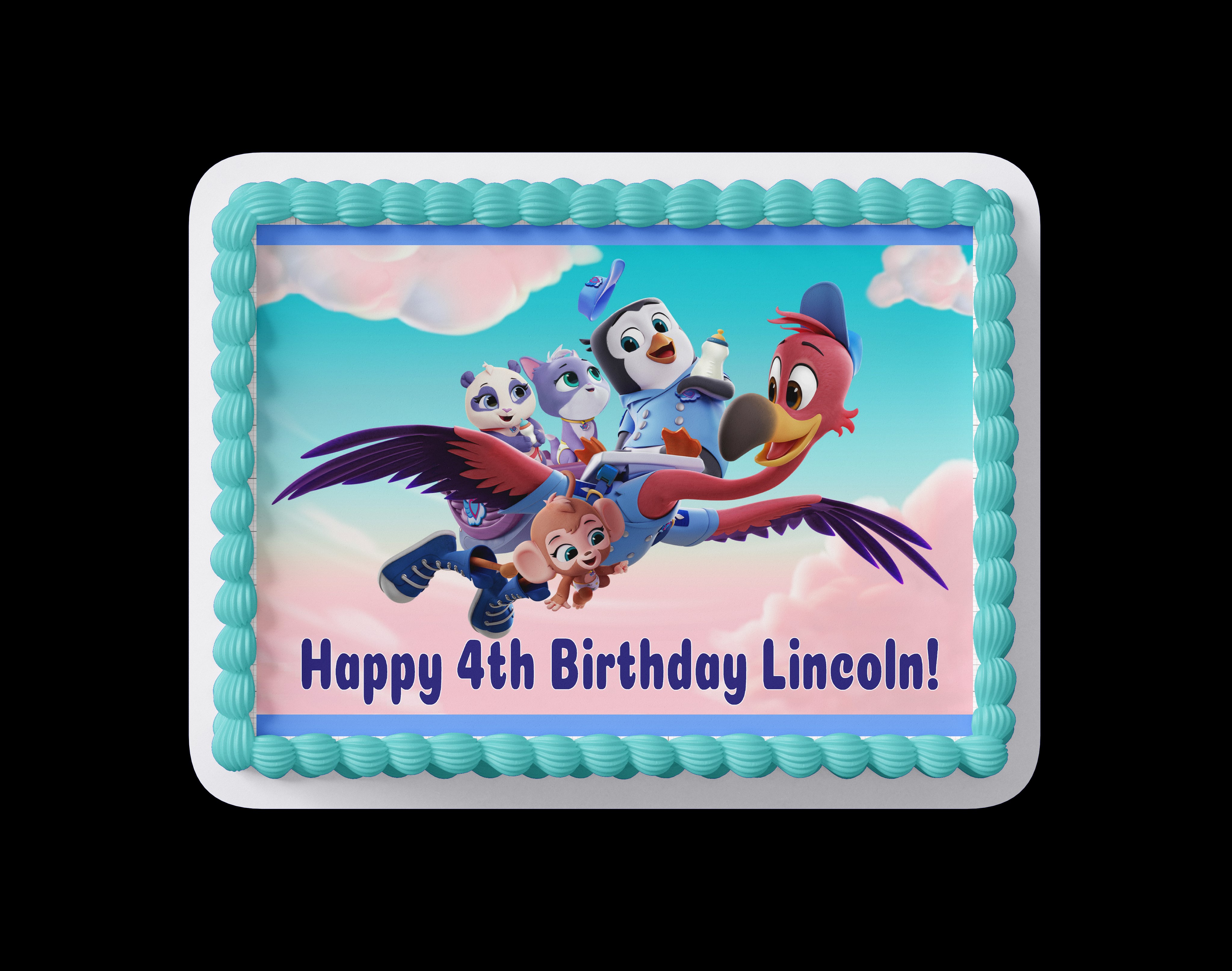This is a custom edible image cake topper which is a thin frosting sheet that will fit a quarter sheet cake. (print area 7.5" x 10.5") Apply directly to the buttercream iced cake. Allow an hour to melt into the buttercream (May have to dab the buttercream to moisten/freshen before applying the topper)