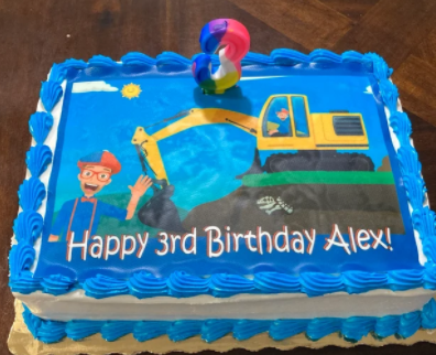 This is a custom edible image cake topper which is a thin frosting sheet that will fit a quarter sheet cake. (print area 7.5" x 10.5") Apply directly to the buttercream iced cake. Allow an hour to melt into the buttercream (May have to dab the buttercream to moisten/freshen before applying the topper)