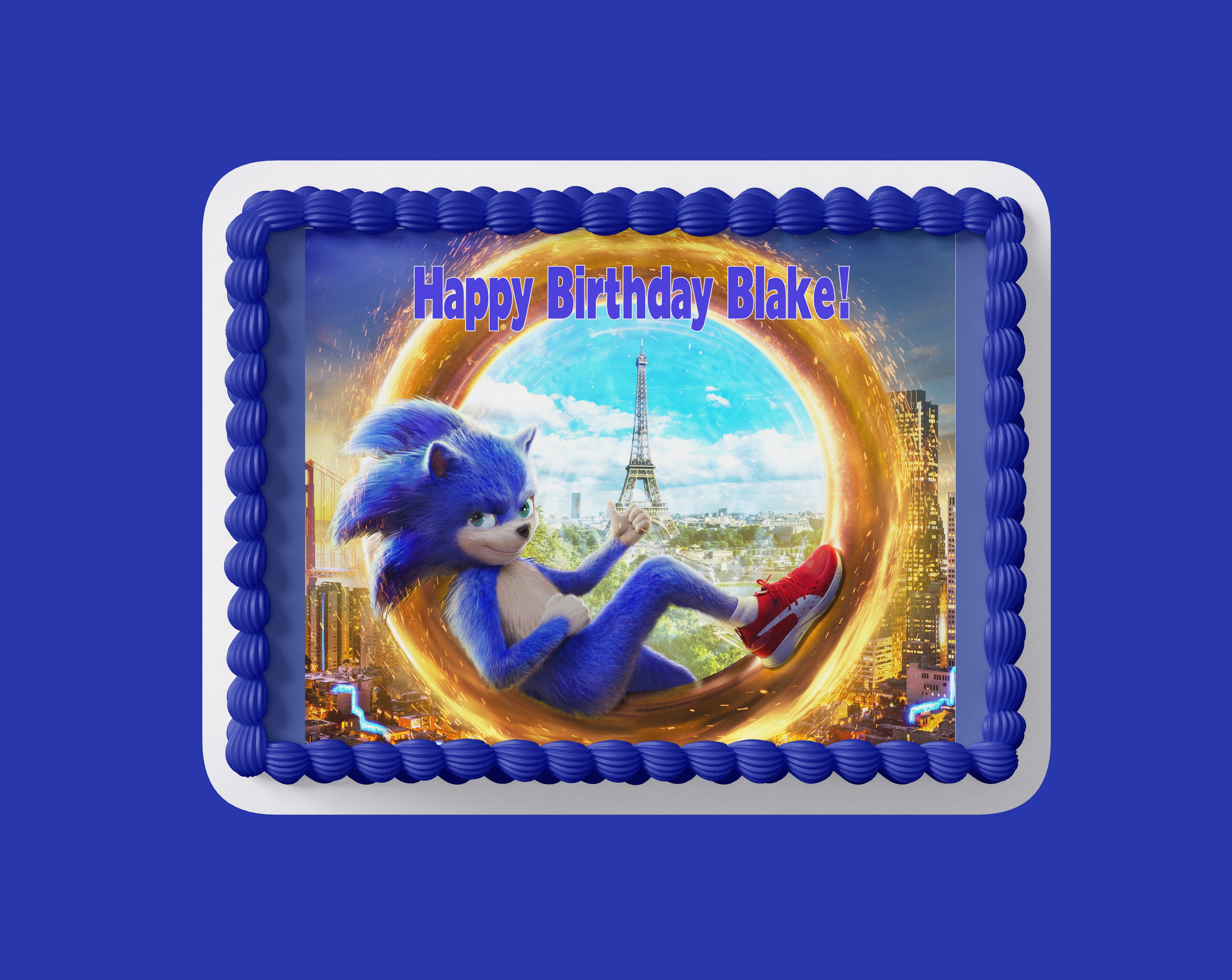 This is a custom edible image cake topper which is a thin frosting sheet that will fit a quarter sheet cake. (print area 7.5" x 10.5") Apply directly to the buttercream iced cake. Allow an hour to melt into the buttercream (May have to dab the buttercream to moisten/freshen before applying the topper)